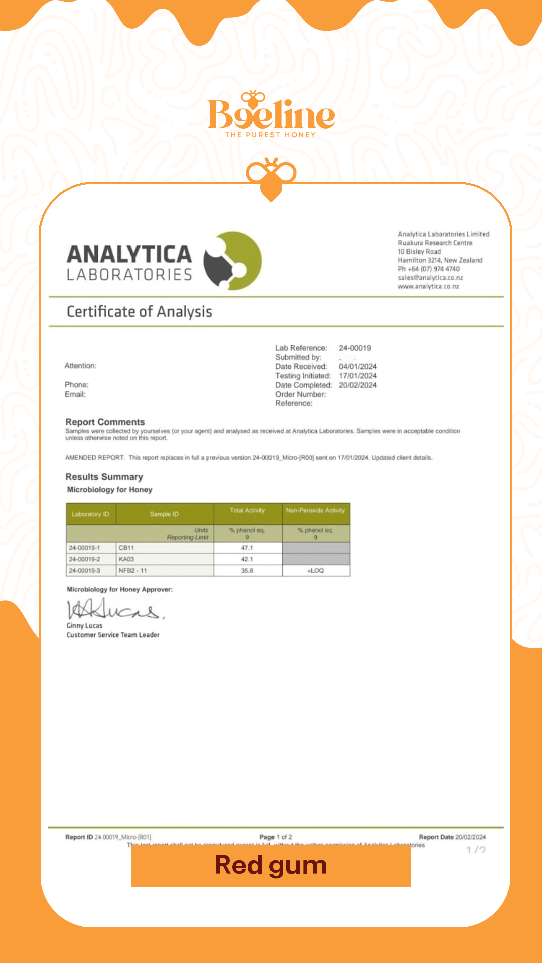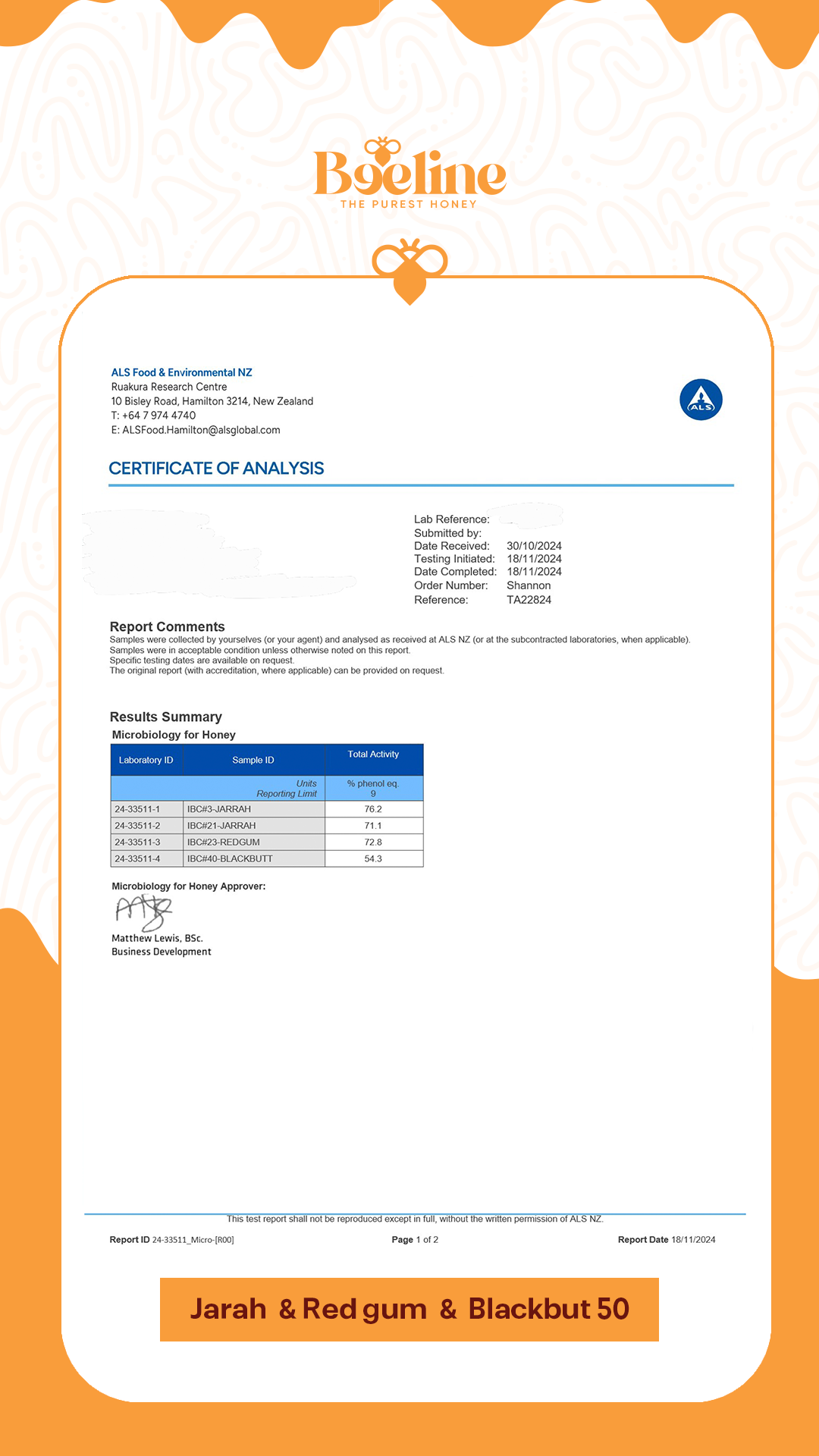 1. شهادة تحليل الجودة (COA) – لكل نوع عسل